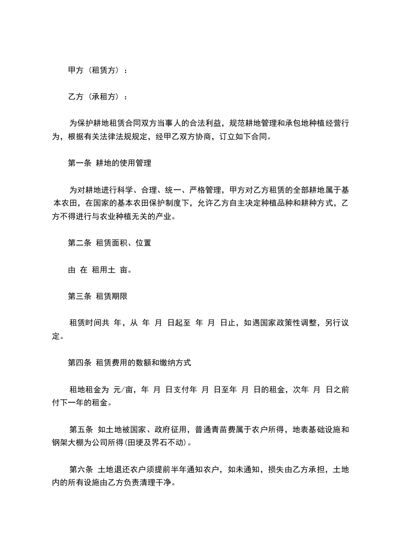 第二条;租赁用途粮食,蔬菜等等,以及其他种植业,在合同期间,不得随便更改土地的用途。