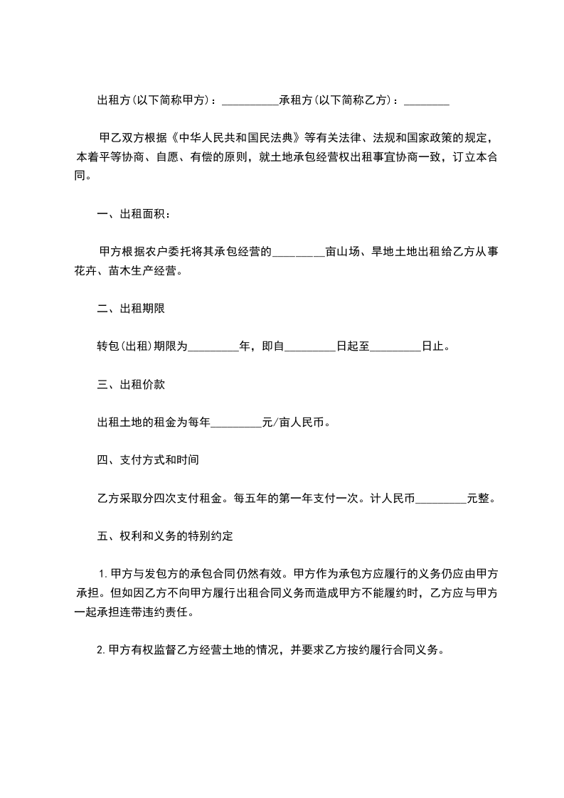 根据《中华人民共和国民法典》等法律法规的规定,为了农村的经济发展,丙方由于种植的需要,经甲方同意,租赁乙方原向甲方承租的的土地。为明确双方的权力和义务达成一致。签合同如下;