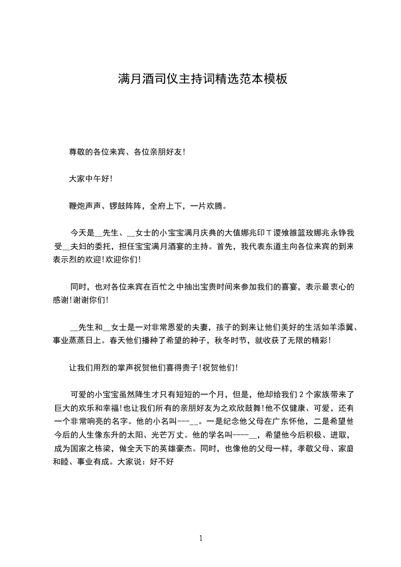 满月酒是一部厚重的父母爱;满月酒是亲人们的希望;满月酒是亲朋好友的祝福。祝福加祝福是无数个祝福;祝福减祝福是祝福的起点。祝福乘祝福是无限个祝福。祝福除祝福是唯一的祝福。在这里我谨代表白氏的亲朋好友,代表在座的女士、先生和小朋友们,衷心地祝愿玉女——白雨桐健康成长、一生幸福!同时,也祝福在座的各位身体健康、和家幸福!