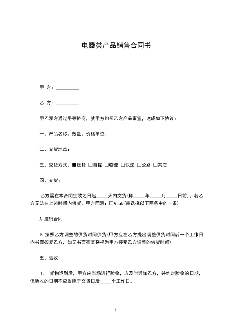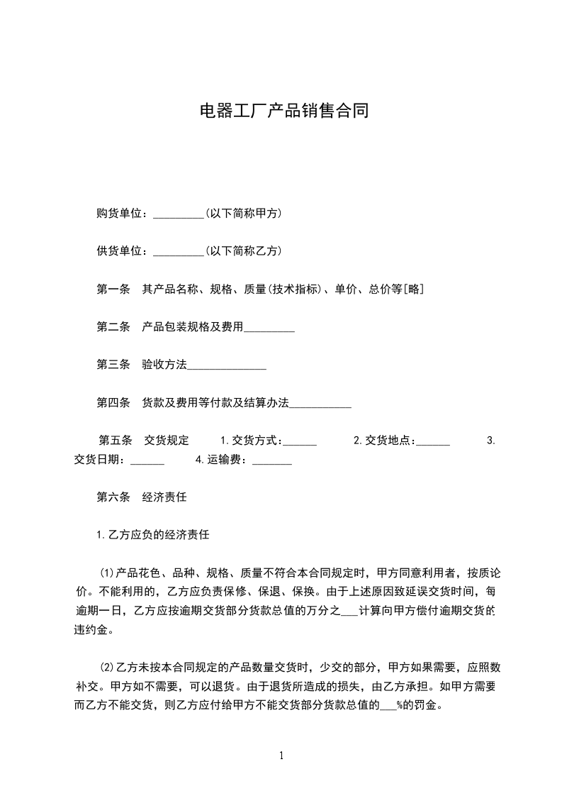(4)产品交货时间不符合同规定时,每延期一天,乙方应偿付甲方以延期交货部分货款总值万分之__的罚金。