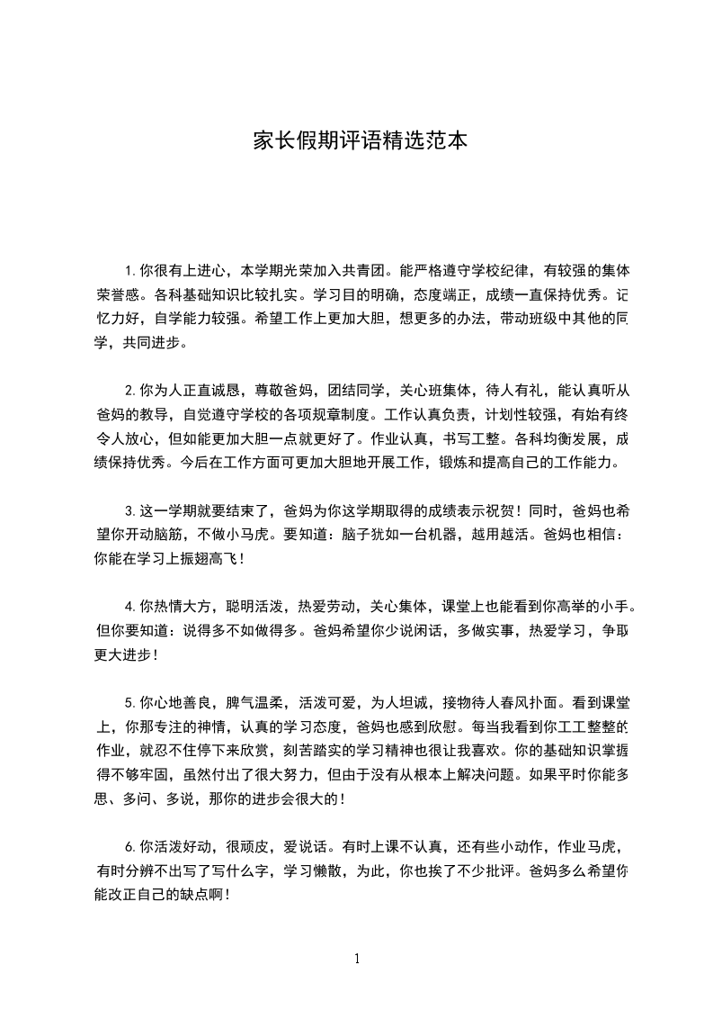 我们发现这学期___的变化确实不少,吃饭方面比以前好多了,在老师的教导下,画画等技能方面比以前进步了,家里感到很高兴。当然在家里的表现比学校里淘气些,但相信在老师和家长的协同教育下将会变得更懂事,变得越来越让人喜爱。