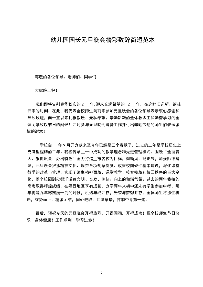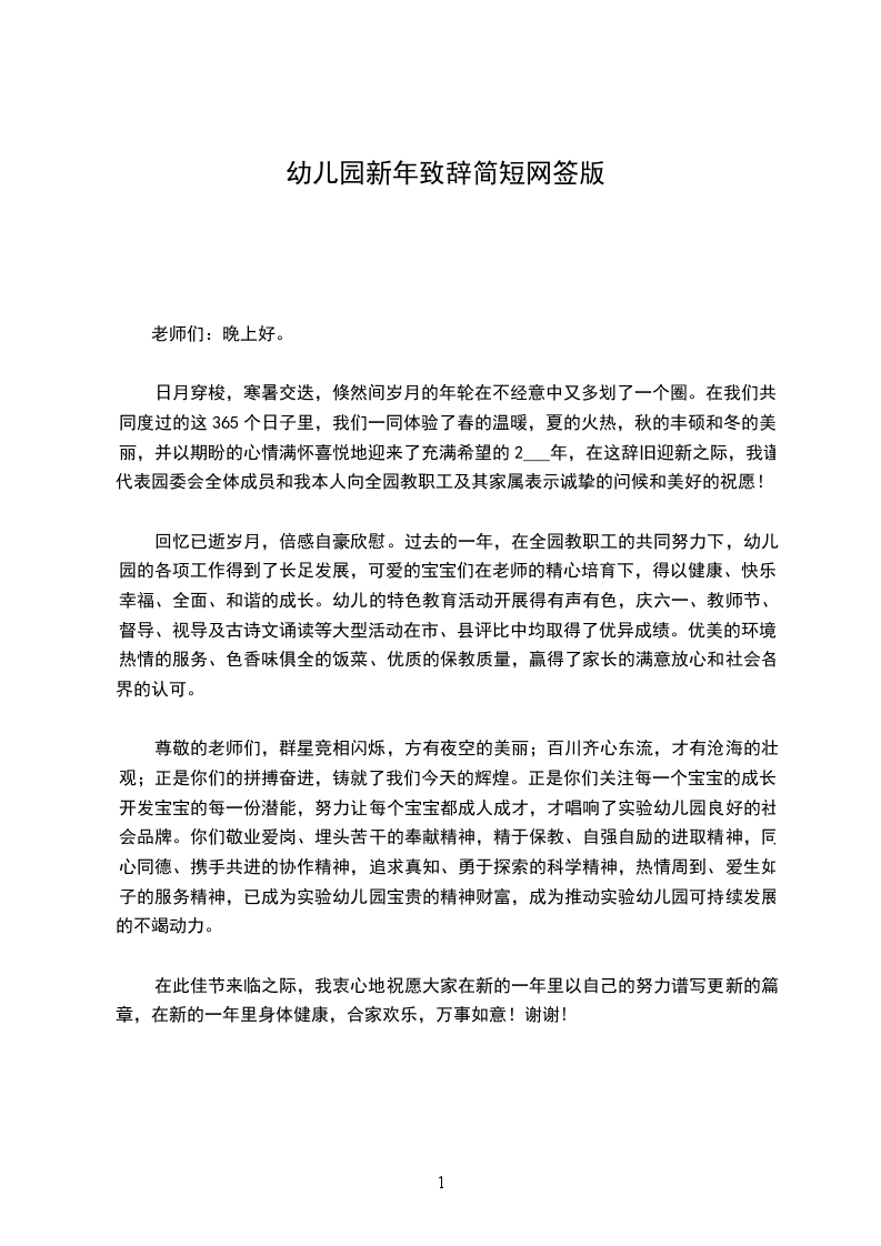 在这辞旧迎新之际,首先恭祝各位新年快乐!在即将成为回忆的2___年里,我园在__集团等各级领导的关怀、指导下,在各位家长的支持、配合下,全体教职员工通过自己辛勤的付出,各项工作都迈入了崭新的阶段。