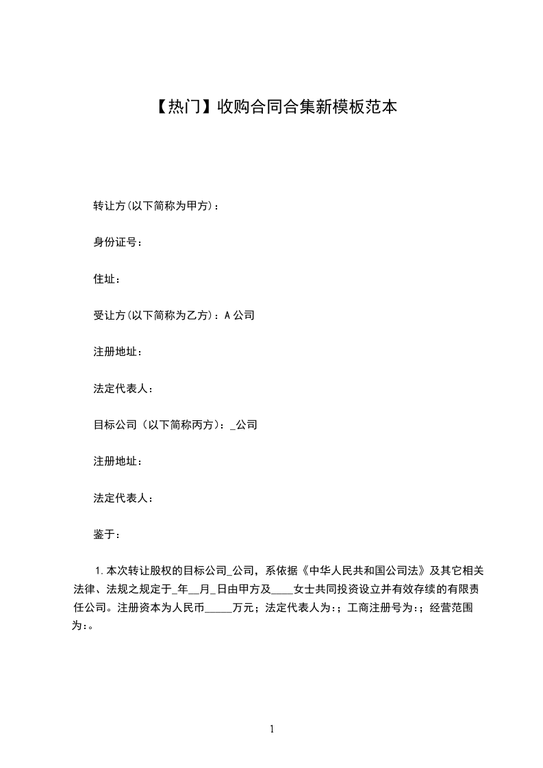 1.甲方系依据《中华人民共和国公司法》及其它相关法律、法规之规定于______年____月____日设立并有效存续的有限责任公司。注册资本为人民币_____元;法定代表人为:__________;