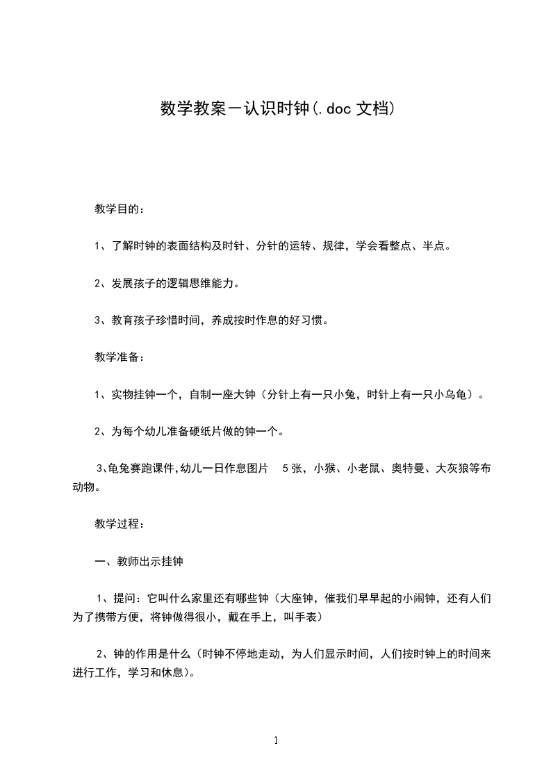 1、了解时钟的结构及分针、时针的运行规律。学会看整点。