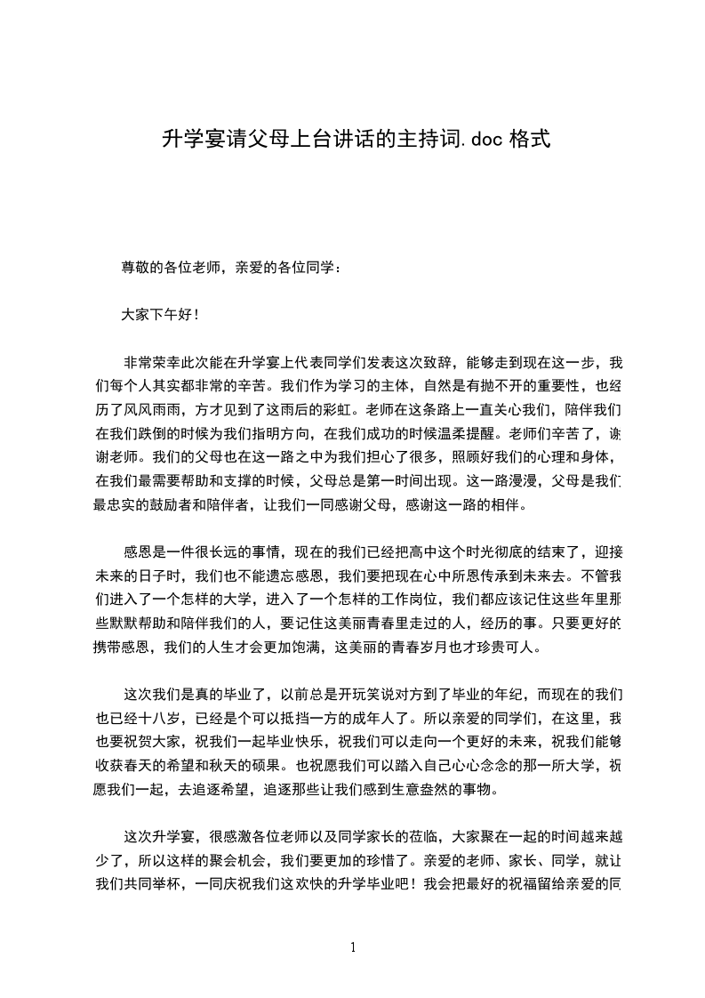 首先,我们为你们感到自豪,因为你们在过去三年里取得了不俗的成绩。这些成绩的取得并不是偶然,而是你们用自己的努力和汗水换来的。在这里,父母要特别提醒大家,考试成绩并不是唯一的评价标准。学习不只是为了追求好成绩,学习的过程中,同样重要的是锤炼自己的意志力和人生态度。我们希望你们在高中里能够养成自律、自信、执着的品质。