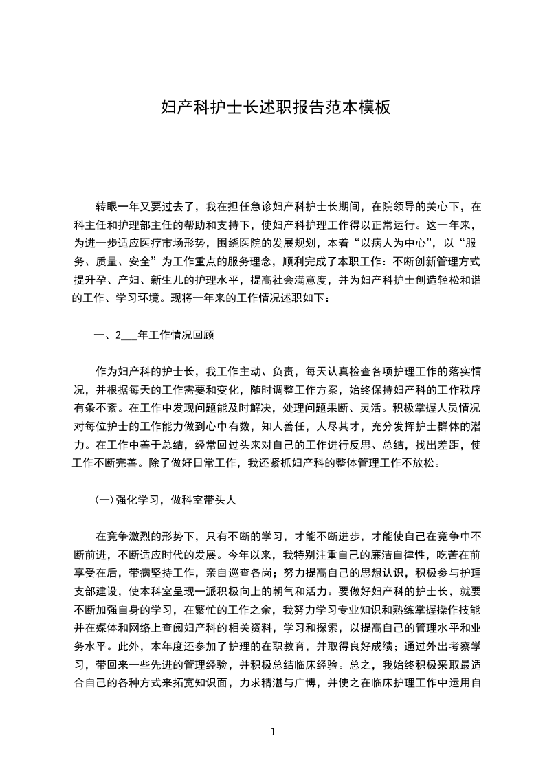 转眼一年又要过去了,我在担任急诊妇产科护士长期间,在院领导的关心下,在科主任和护理部主任的帮助和支持下,使妇产科护理工作得以正常运行。这一年来,为进一步适应医疗市场形势,围绕医院的发展规划,本着“以病人为中心”,以“服务、质量、安全”为工作重点的服务理念,顺利完成了本职工作:不断创新管理方式,提升孕、产妇、新生儿的护理水平,提高社会满意度,并为妇产科护士创造轻松和谐的工作、学习环境。现将一年来的工作情况述职如下: