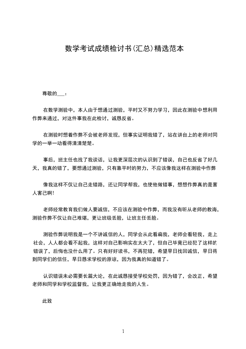 在数学测验中,本人由于想通过测验,平时又不努力学习,因此在测验中想利用作弊来通过,对这件事我在此检讨,诚恳反省。