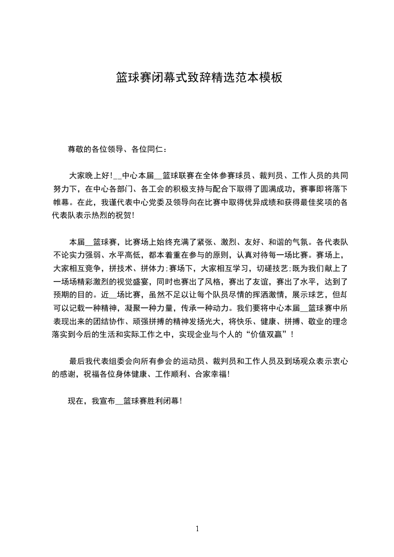 现在,我宣布__篮球赛胜利闭幕!