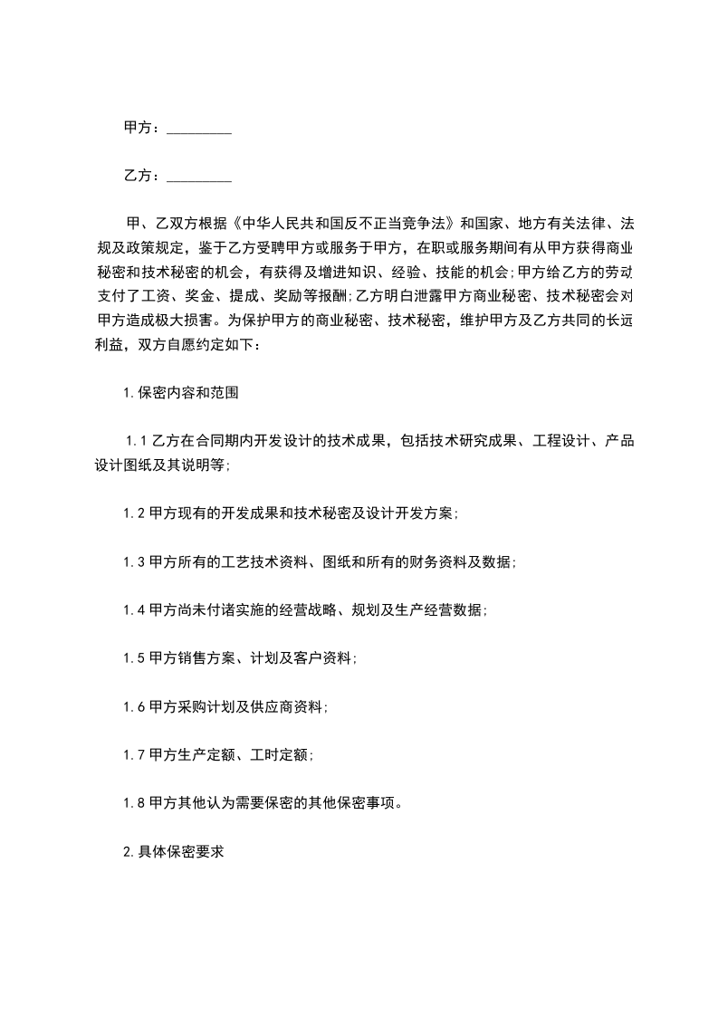 一、乙方必须严格保守公司商业秘密,并在工作中严格遵守公司《保密守则》之规定。