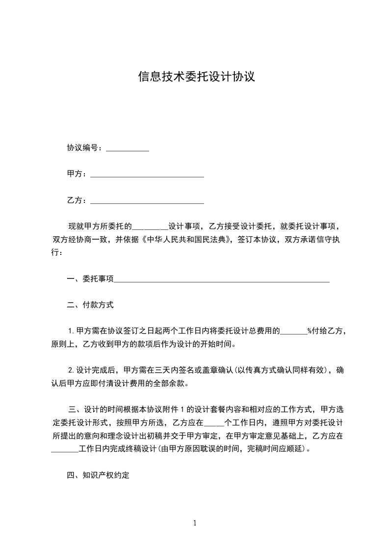 现就甲方所委托的_________设计事项,乙方接受设计委托,就委托设计事项,双方经协商一致,并依据《中华人民共和国民法典》,签订本协议,双方承诺信守执行: