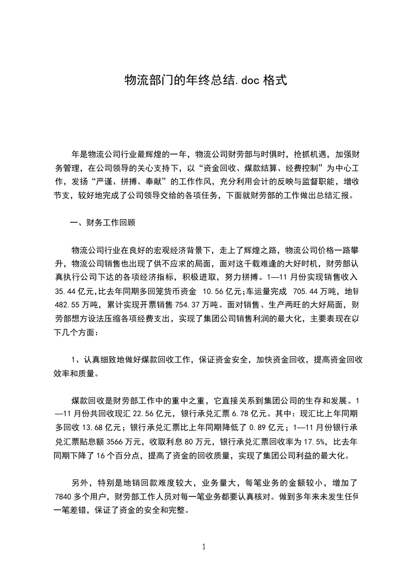随着公司的不断发展,物流部规模也得以壮大。我部门从全局利益出发,坚持以安全为中心、服务为宗旨、效益为目标的原则而开展工作。加强部门管理建设,不断提高人员素质,强化服务水平、降低运营成本。全体员工齐心协力、努力奋斗,争取比上年度取得更好的效益。