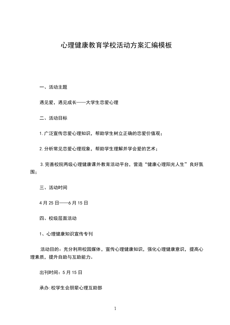 活动目的:充分利用校园媒体,宣传心理健康知识,强化心理健康意识,提高心理素质,提升自助与互助能力。