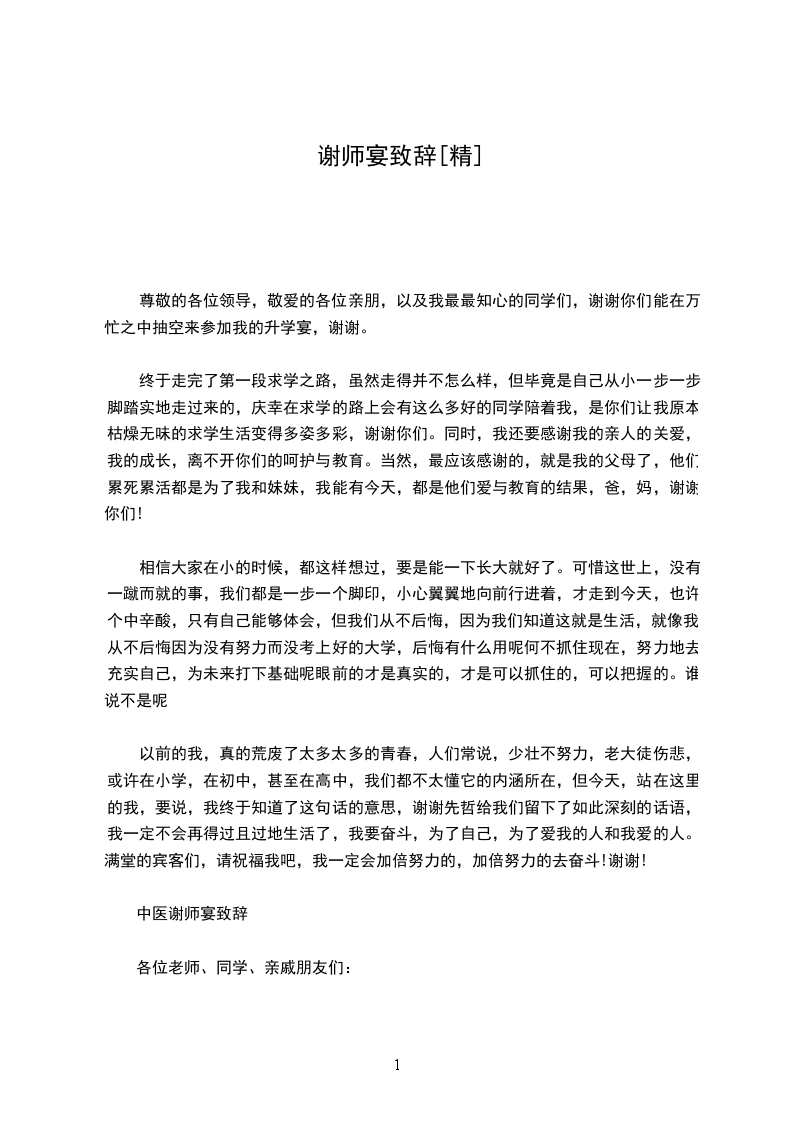 中医谢师宴致辞