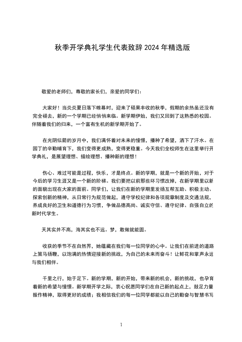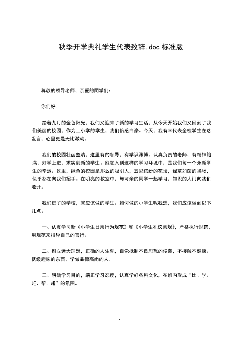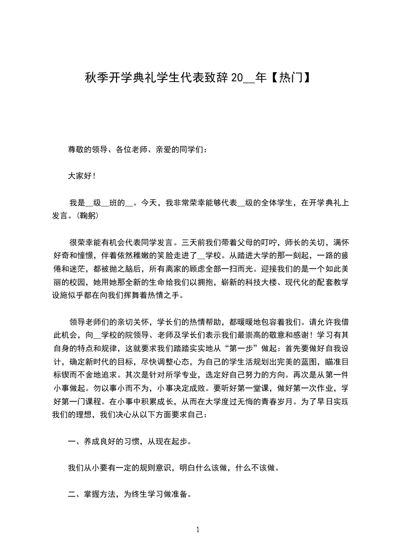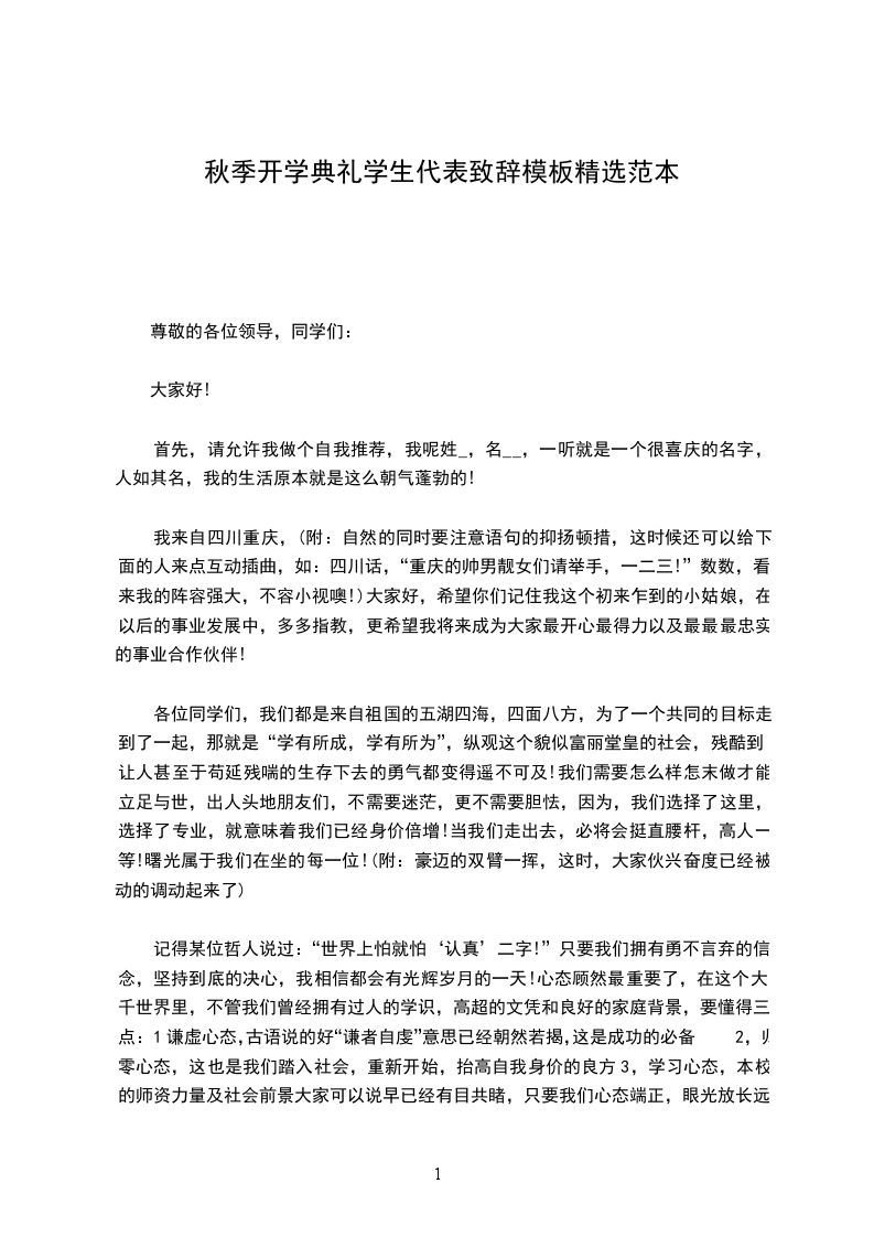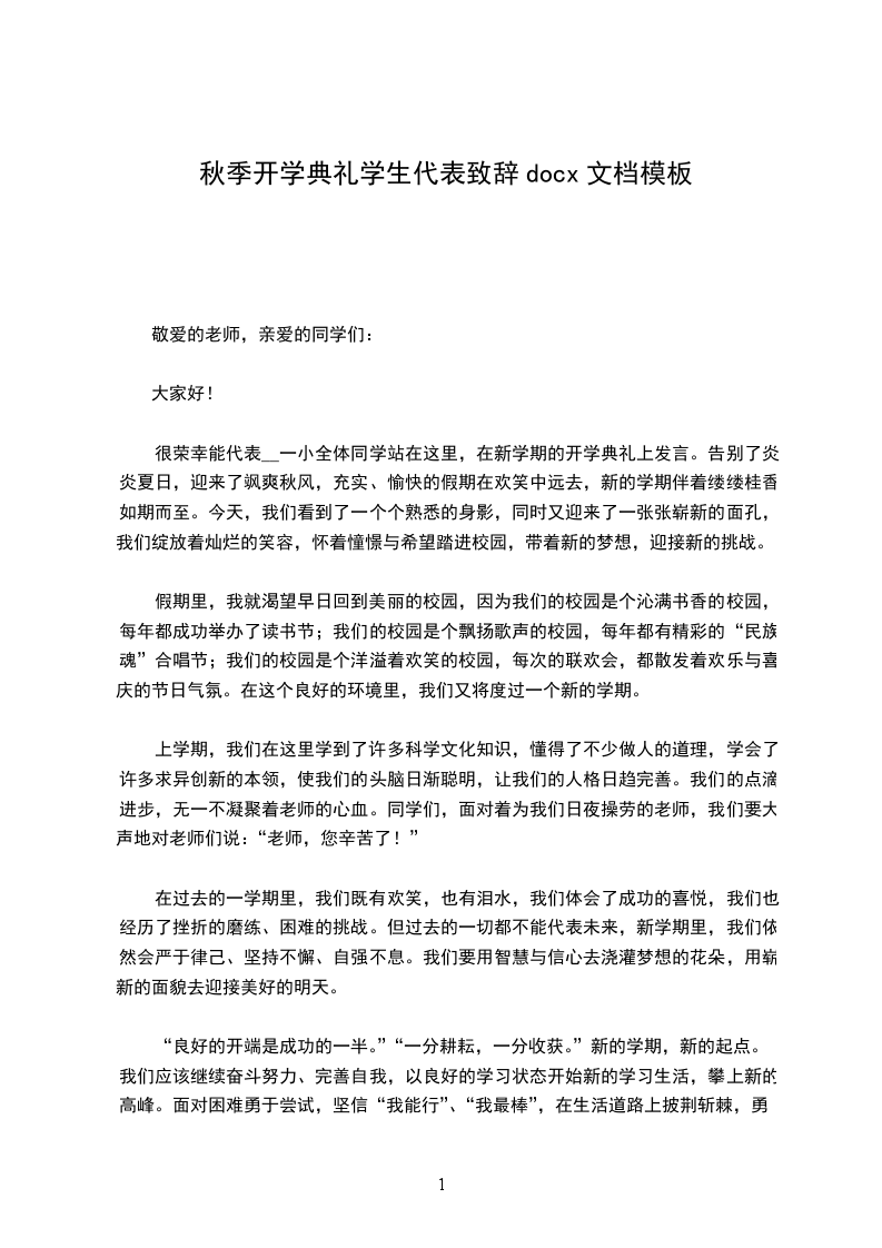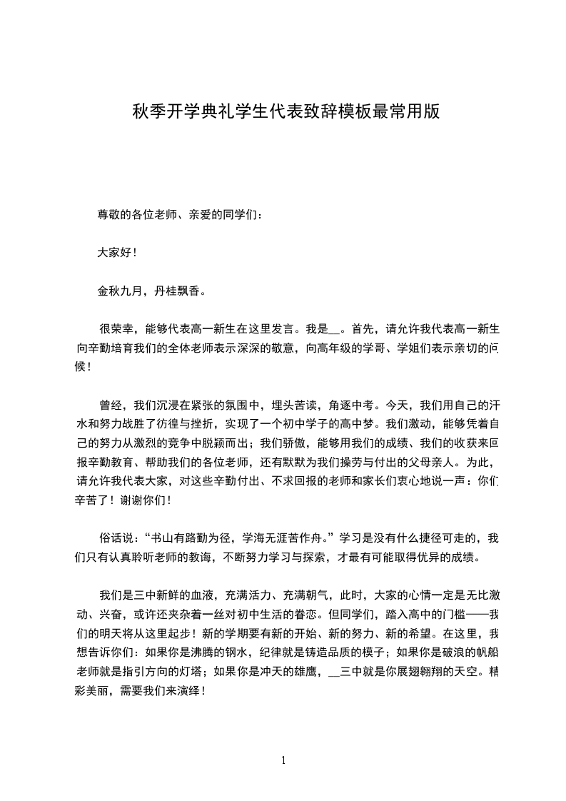 很荣幸,能够代表高一新生在这里发言。我是__。首先,请允许我代表高一新生向辛勤培育我们的全体老师表示深深的敬意,向高年级的学哥、学姐们表示亲切的问候!