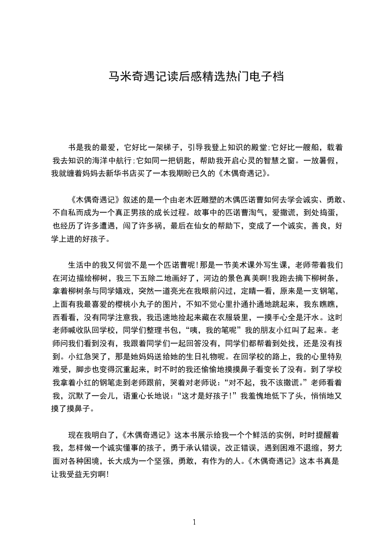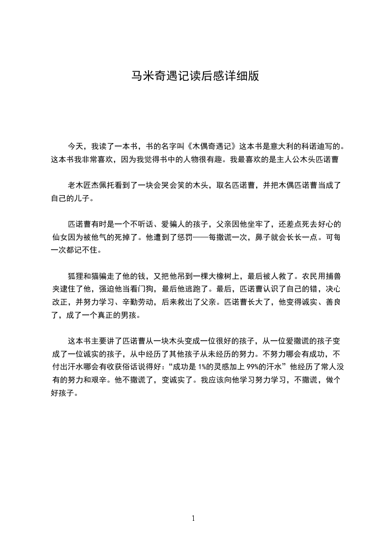 这本书中的匹诺曹给我留下了深刻的印象,贪玩的他轻易相信坏蛋的话,成为了一个不讲诚信、不爱学习、自私自利的人,在经历了一系列的故事后匹诺曹才变成一个懂事、诚实、爱学习的孩子。而只有这样,木偶匹诺曹才能真正成为一个有血有肉的男孩。由此我想到,上学期,我们班有一些同学为了玩就去偷偷拿家长的钱,还说谎欺骗他人,同学们都很讨厌这样的同学,他们就像是爱说谎的木偶。后来经过老师和家长的教育,他们改正了自己的缺点,变得爱学习、讲诚信,又成为了同学的好伙伴。我觉得我们每个人应该从小木偶匹诺曹身上得到启示,做人就应该做一个真正的讲诚信、爱学习、心中有爱的人,也只有这样才能得到他人的喜欢。我希望我做一个令别人喜欢的人!