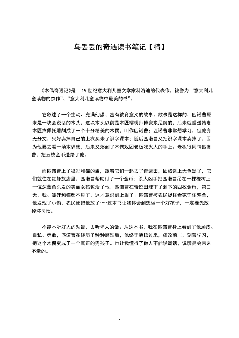 这本书讲的是一个叫匹诺曹的小木偶跟爸爸一起生活的故事,虽然匹诺曹很想做个好孩子,可是他经不起诱惑,结交坏朋友,相信坏蛋猫和瘸狐狸的谎言,为了玩居然撒谎、逃学,伤透了爸爸的心。小仙女再三教育他不能说谎,可是他就是不听,小仙女无可奈何,只好对他下了诅咒,每当他说一次谎,他的鼻子就会变长一些。即使这样,匹诺曹还是听信了坏朋友的诱惑变得不诚信起来,于是他的鼻子真的长得能停一只小鸟了,他还长出了驴耳朵,差点变成一只任人宰割的驴子。这时,匹诺曹才后悔起来,最后在小仙女的帮助下,他改正了自己的缺点,成为了一个讲诚信、爱学习、勇敢、聪明的真正的男孩。