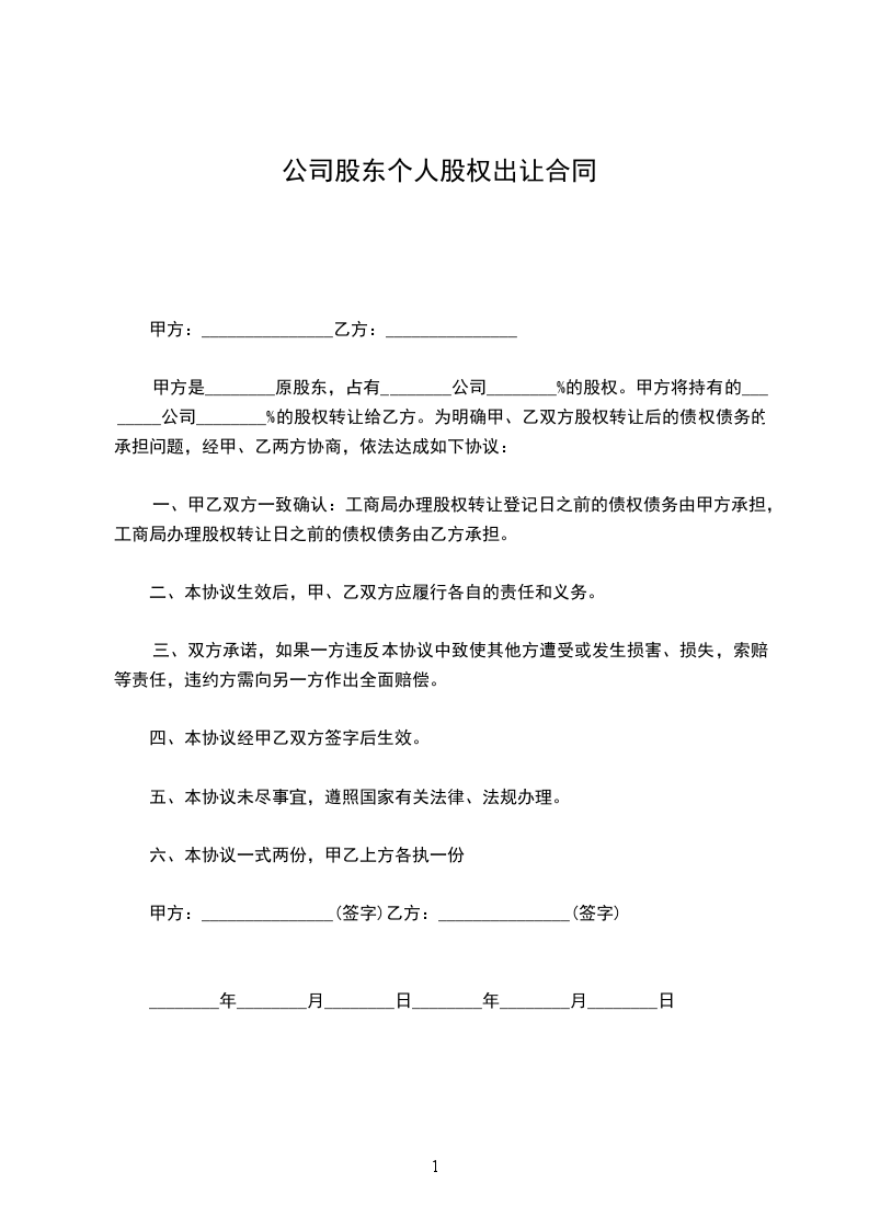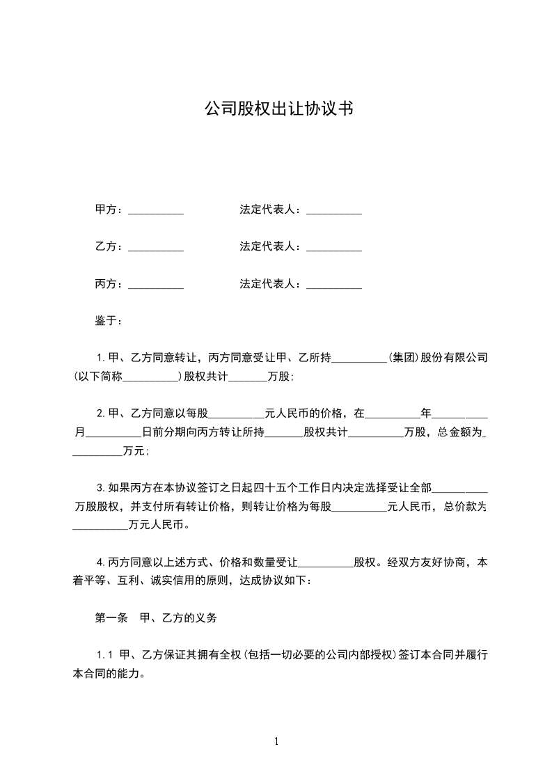 1.甲、乙方同意转让,丙方同意受让甲、乙所持__________(集团)股份有限公司(以下简称__________)股权共计_______万股;