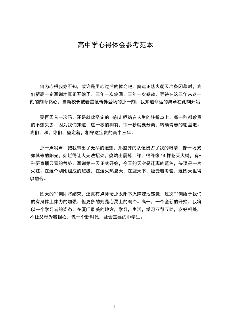 四天的军训即将结束,还真有点怀念那太阳下火辣辣地感觉,这次军训给予我们的有身体上体力的加强,但更多的则是心灵上的陶冶。高一,一个全新的开始,我将以一个学习者的姿态,在厦门最美的地方,学习,生活,学习互帮互助,友好相处,不让父母为我担心,做一个新时代,社会需要的中学生。