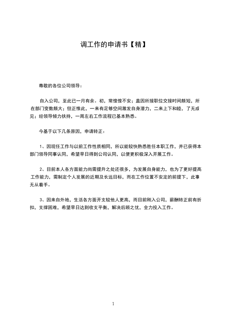 1、因现任工作与以前工作性质相同,所以能较快熟悉胜任本职工作,并已获得本部门领导同事认同,希望早日得到公司认同,以便更积极深入开展工作。