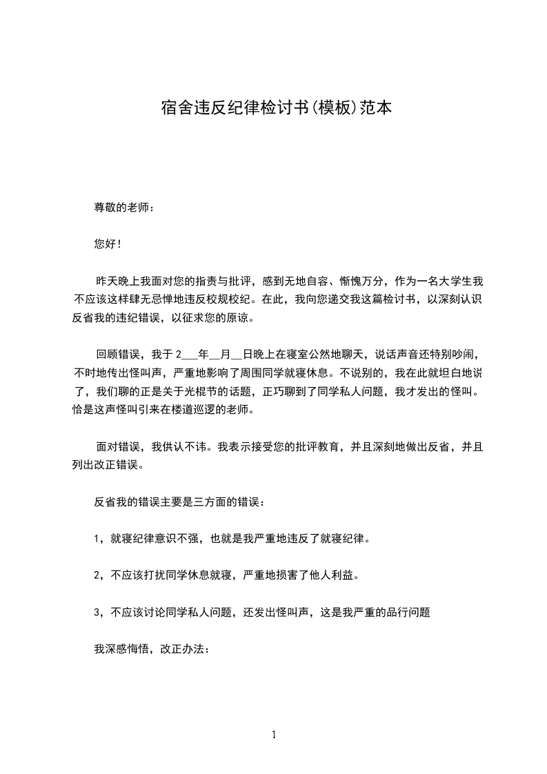 现在犯了这么大的错误,我在纪律这方面给班级扣了分,所以在这里我对老师及同学感到非常的抱歉。希望老师能够看到我对这次错误发生感到后悔的态度。但是以后我一定会严格遵守学校的规章制度,不在学校宿舍大声讲话,不打扰同学,严格要求自己。
