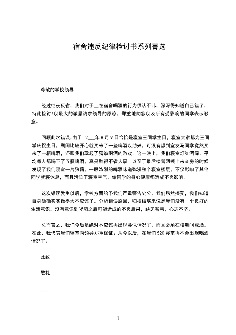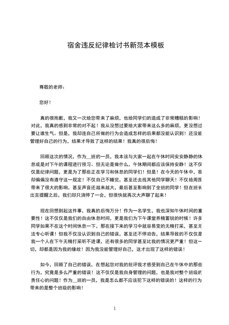 相信老师看到我的态度就会知道我对这件事情的态度,希望老师能够接受我的这篇学校宿舍违反纪律的检讨书。