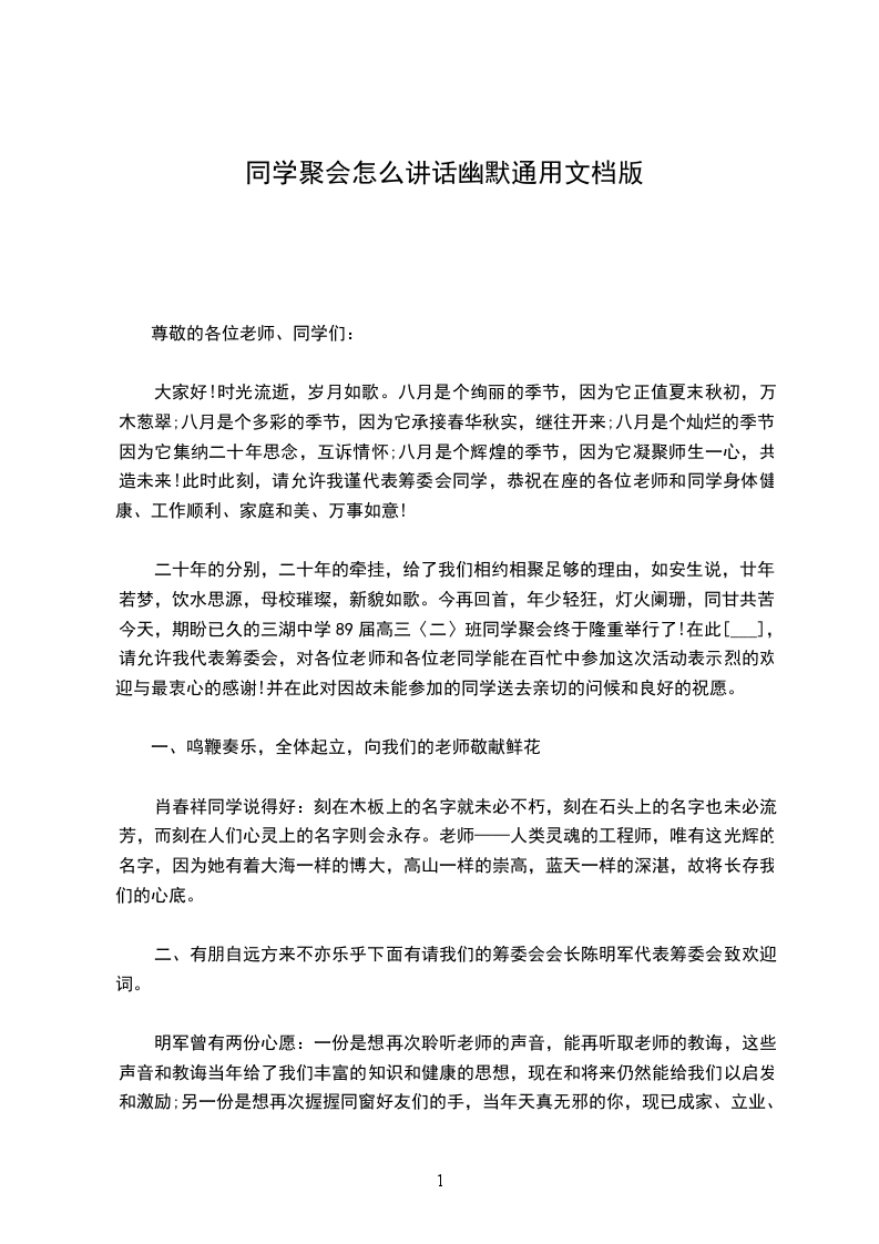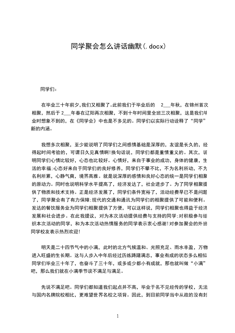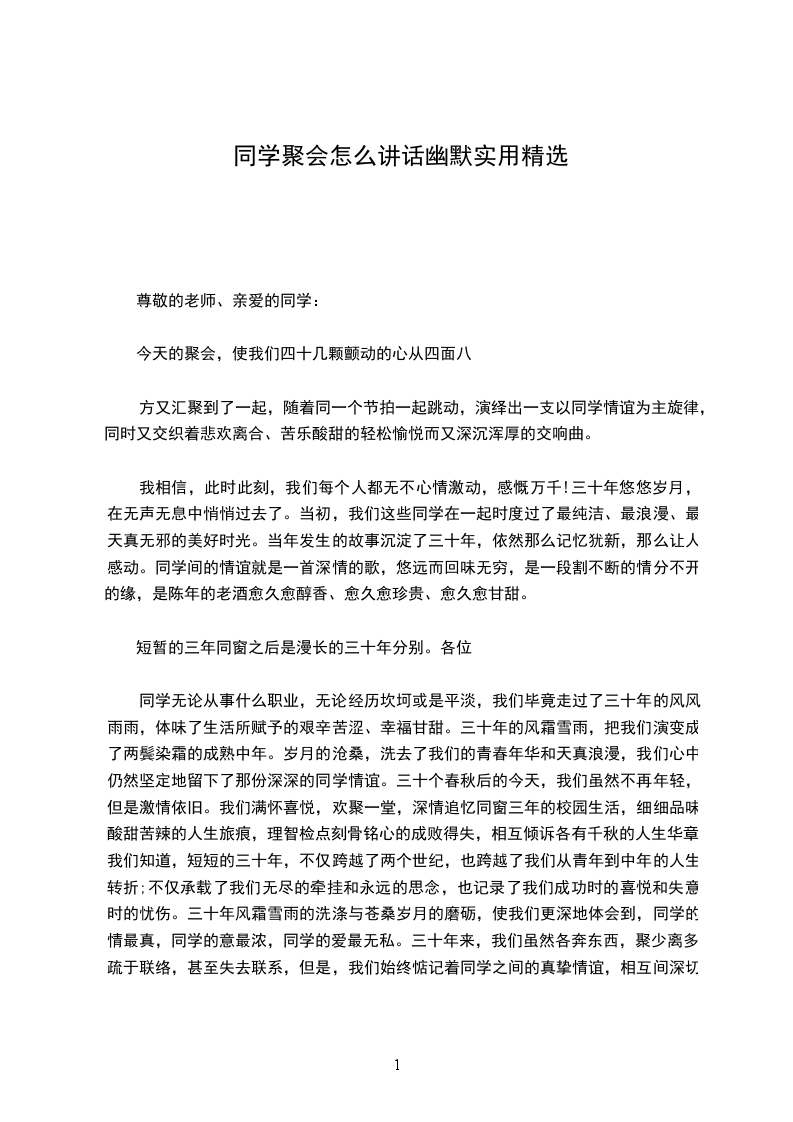 而宝贵。我们要珍惜同学友情,珍惜聚会时光,增进沟通交流,使我们的聚会成为传播和巩固友谊的桥梁,让我们的友谊地久天长!