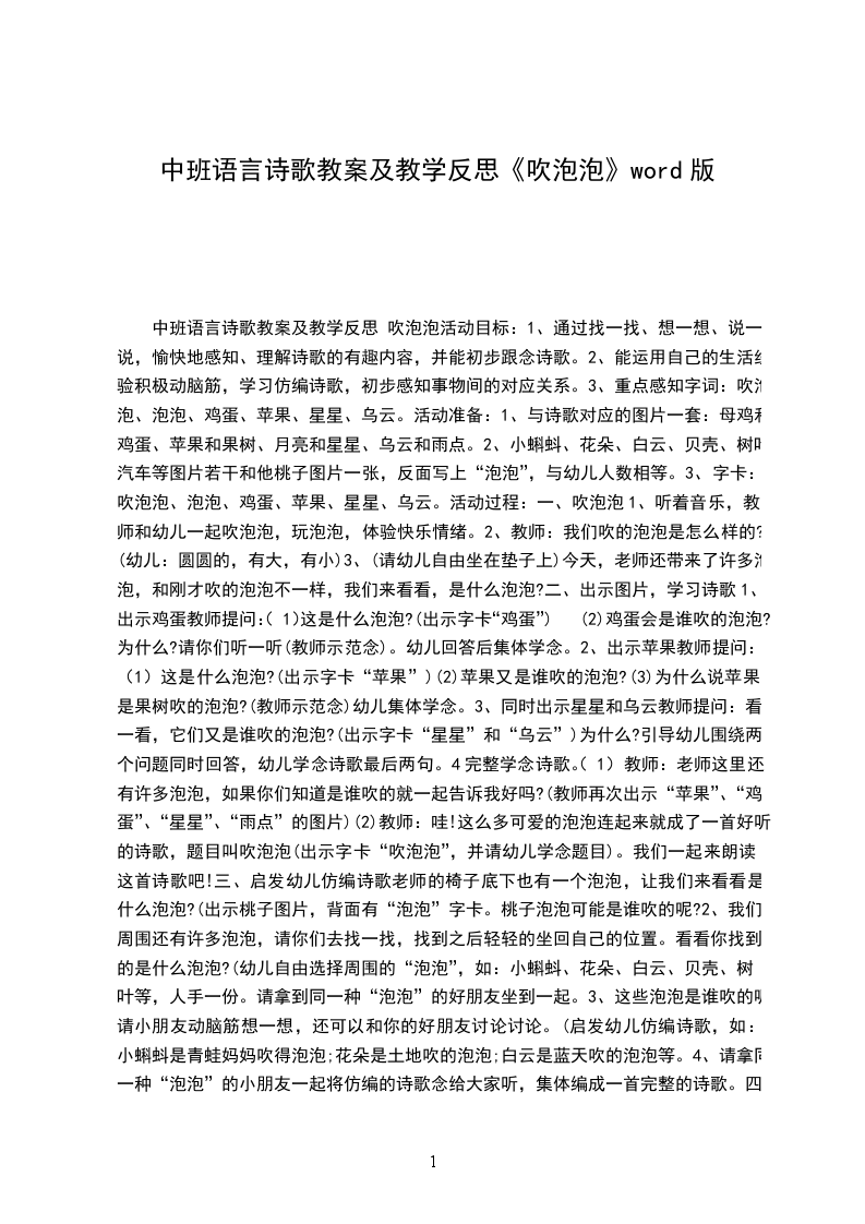 1、师:小朋友吹泡泡真有意思!你们还想看它再吹一次吗老师完整的播放课件并示范朗诵