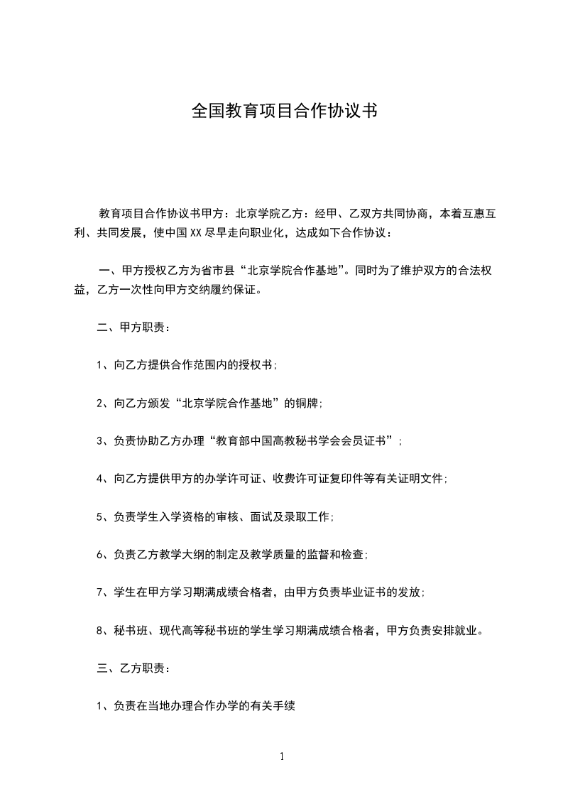 5、安排有意向企业到__________实地考察,对考察后企业进行一对一跟踪落实。如果企业与甲方的合作项目超过_____个以上,乙方可以组织在当地或__________举办对口项目洽谈及签约活动(费用另定)。