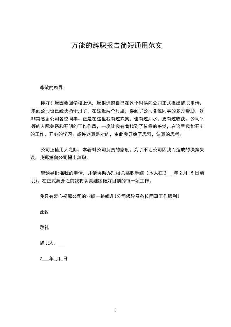 你好!我因要回学校上课,我很遗憾自己在这个时候向公司正式提出辞职申请。来到公司也已经快两个月了,在这近两个月里,得到了公司各位同事的多方帮助,我非常感谢公司各位同事。正是在这里我有过欢笑,也有过泪水,更有过收获。公司平等的人际关系和开明的工作作风,一度让我有着找到了依靠的感觉,在这里我能开心的工作,开心的学习。或许这真是对的,由此我开始了思索,认真的思考。