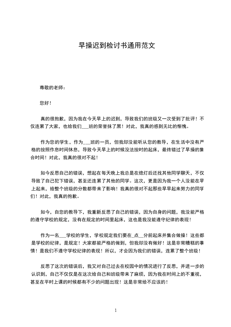 真的很抱歉,因为我在今天早上的迟到,导致我们的班级又一次受到了批评!不仅连累了大家,也给我们___班的荣誉抹了黑!对此,我真的感到无比的惭愧。