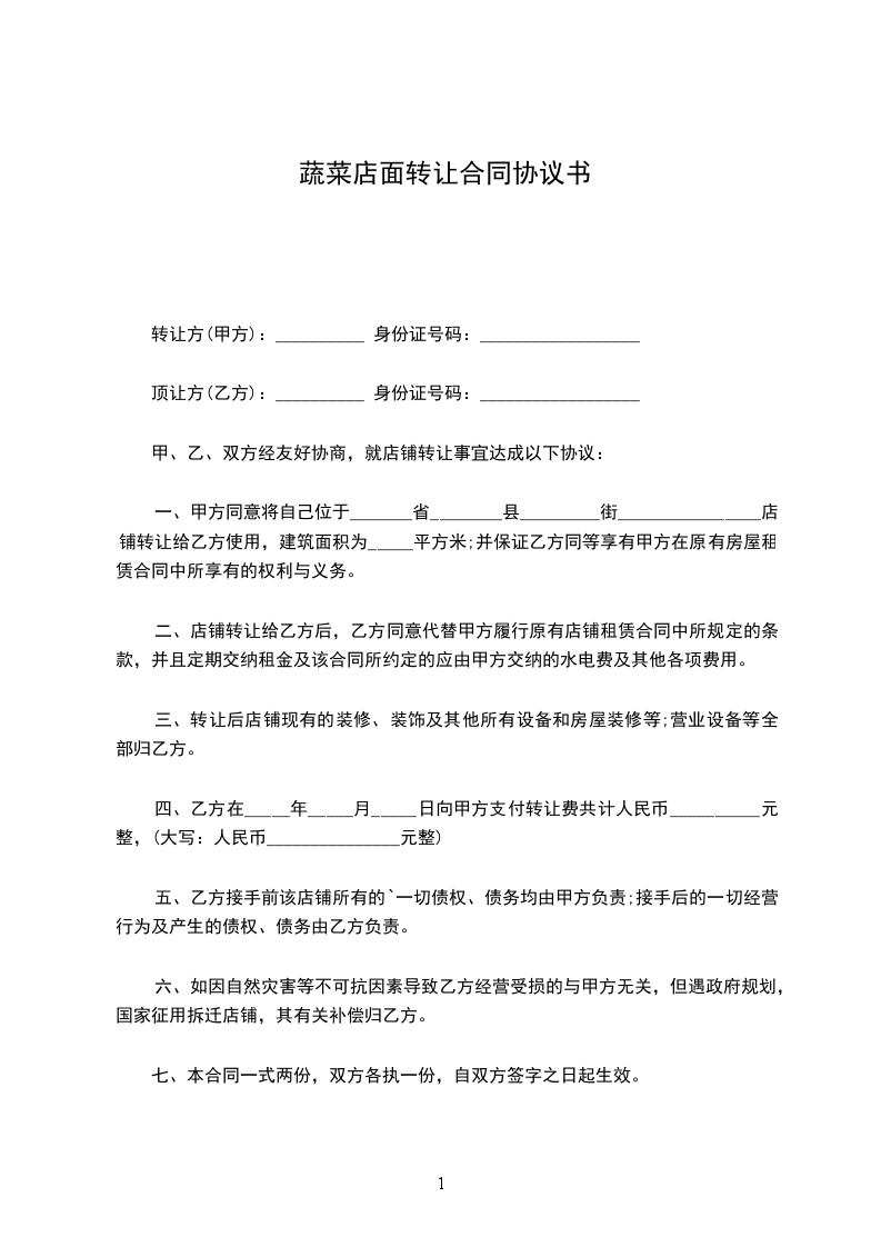 一、甲方同意将自己位于_______省________县_________街________________店铺转让给乙方使用,建筑面积为_____平方米;并保证乙方同等享有甲方在原有房屋租赁合同中所享有的权利与义务。