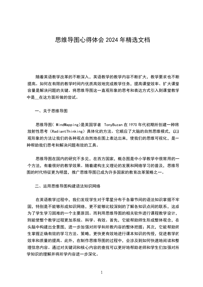 思维导图(MindMapping)是英国学者TonyBuzan在1970年代初期所创建一种将放射性思考(RadiantThinking)具体化的方法。它顺应了大脑的自然思维模式,以直观形象的方法让我们的各种观点自然地在图上表达出来,使我们的思维可视化,是一种帮助我们思考和解决问题有效的工具。