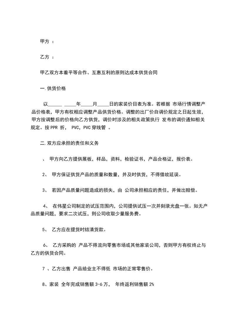 1、乙方须保证产品质量,有质量问题的产品,乙方须负责更换或退货。