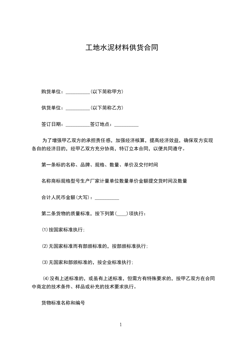 1、货物的价格,双方商定为__________元/。在合同期内,如遇交易货物市场价格发生较大变化,幅度超过±10%时,双方协商适当调整价格。