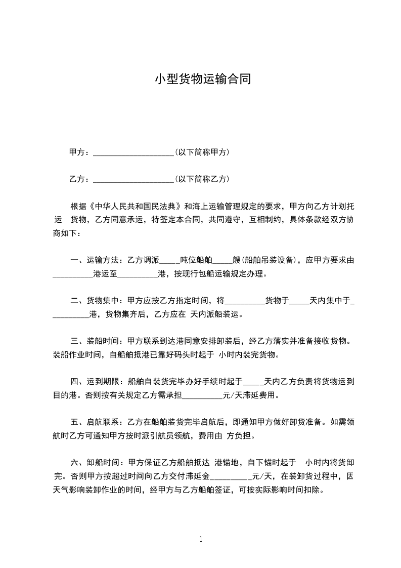 根据《中华人民共和国民法典》和海上运输管理规定的要求,甲方向乙方计划托运 货物,乙方同意承运,特签定本合同,共同遵守,互相制约,具体条款经双方协商如下: