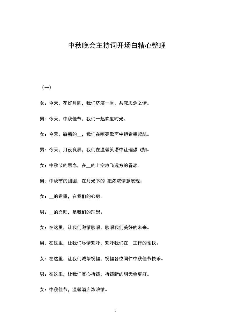 女:都说每逢佳节倍思亲,中秋节的这一份思念当然会更深切在一轮皎皎明月高挂的时刻。我们热忱的欢迎我们__的朋友和__相聚在__!