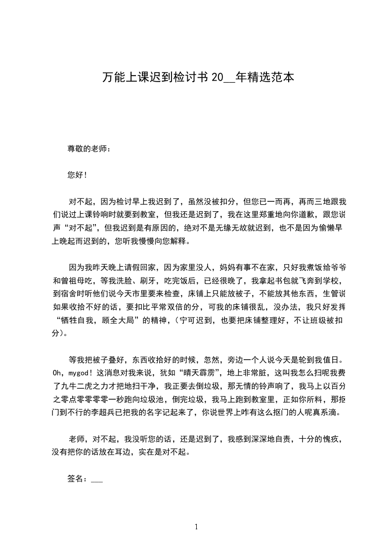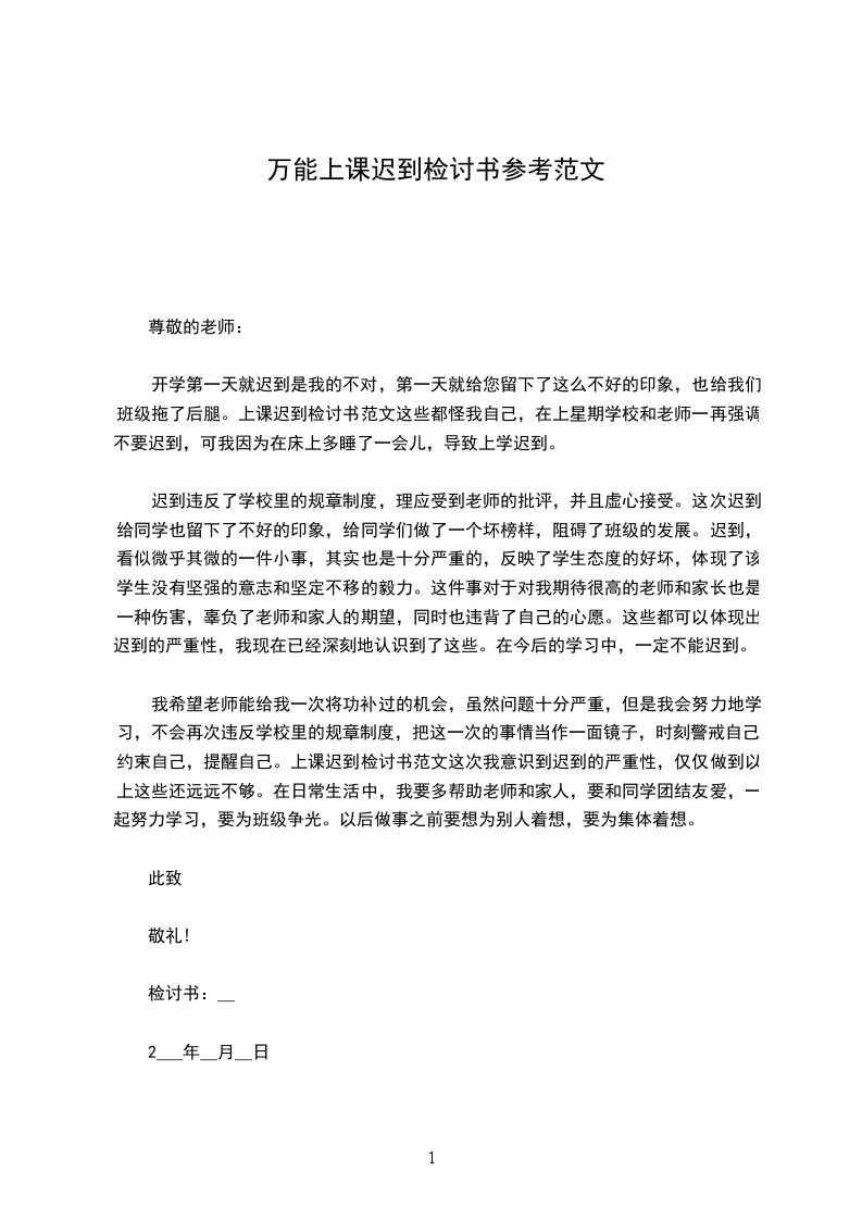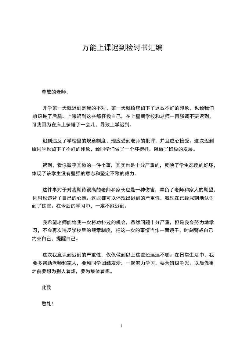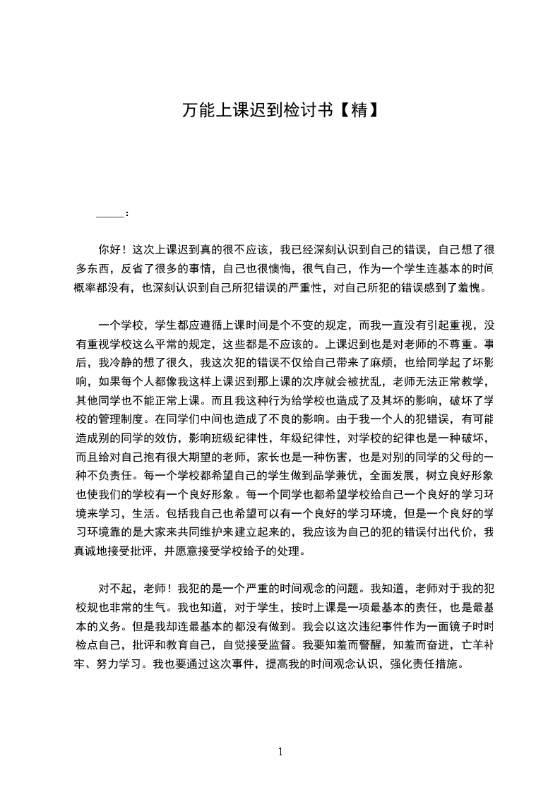 对不起,老师!我犯的是一个严重的时间观念的问题。我知道,老师对于我的犯校规也非常的生气。我也知道,对于学生,按时上课是一项最基本的责任,也是最基本的义务。但是我却连最基本的都没有做到。我会以这次违纪事件作为一面镜子时时检点自己,批评和教育自己,自觉接受监督。我要知羞而警醒,知羞而奋进,亡羊补牢、努力学习。我也要通过这次事件,提高我的时间观念认识,强化责任措施。