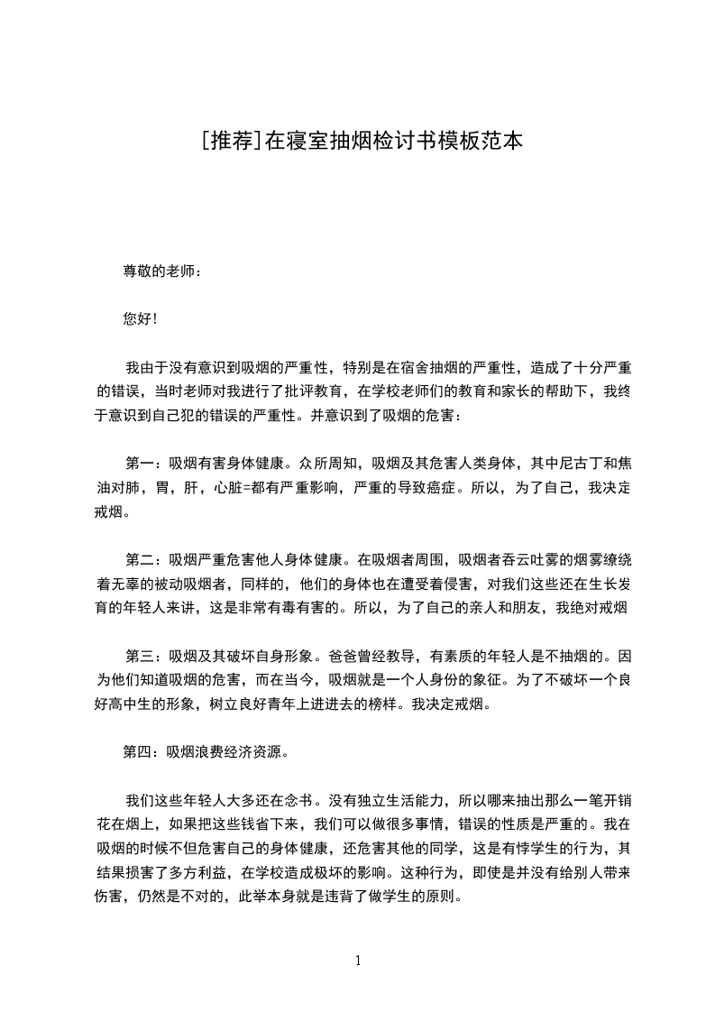 我是高一__班的___,我在寝室里面吸烟被巡查的老师抓到了,我在这里检讨,吸烟是不对的,有害健康,而且作为学生,正在长身体的时候,更不应该吸烟。