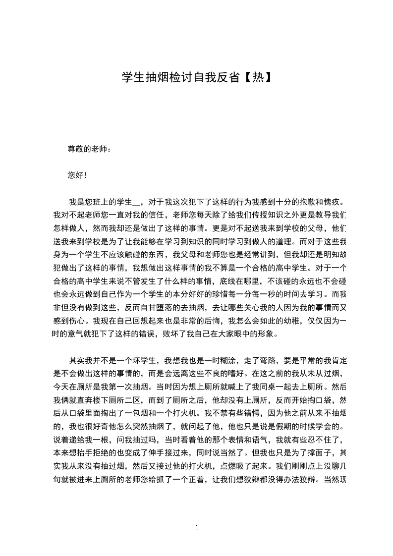 很抱歉要向您递交这份检讨书,关于反省我在学校抽烟的错误。