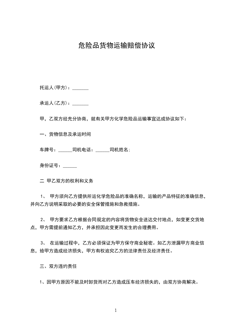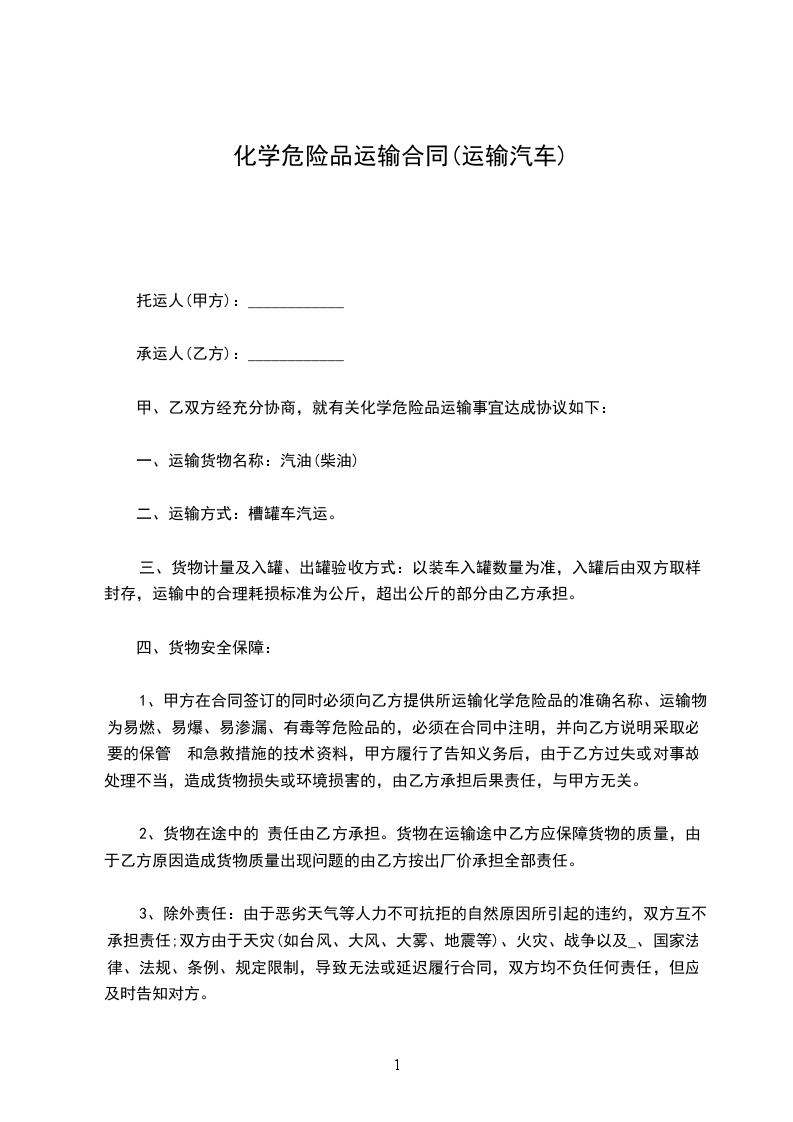 1、 甲方委托乙方承运货物基本情况: