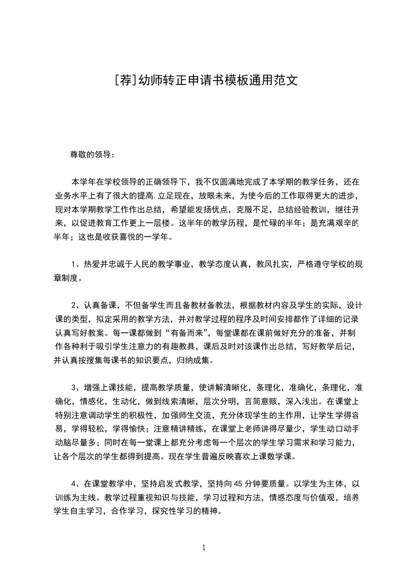 经过试用期的锻炼,我已经达到了转正要求,在此我提出转正申请,恳求领导给我一个为学校效力的机会。