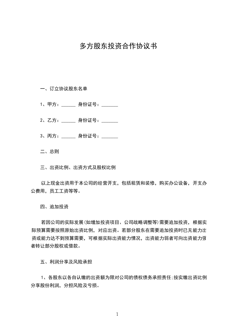 1、全体合伙人出资总额人民币________元(或总计为十成),每一合伙人已按下表所列的种类、数量履行出资义务。出资人姓名、出资种类、价值量(以人民币为单位)、占出资总额的百分比在合伙关系存续期间,为了扩大经营规模而有必要追回投资时,各合伙人自接到通知后_________日内,按上表所列的比例追回出资数额。以上出资为合伙人共有财产。
