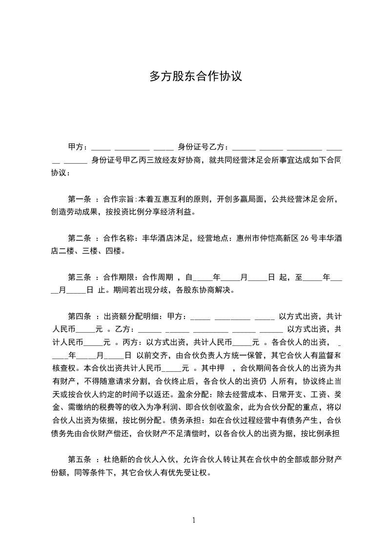 1、接纳新的合伙人须由本协议当事人一致同意。