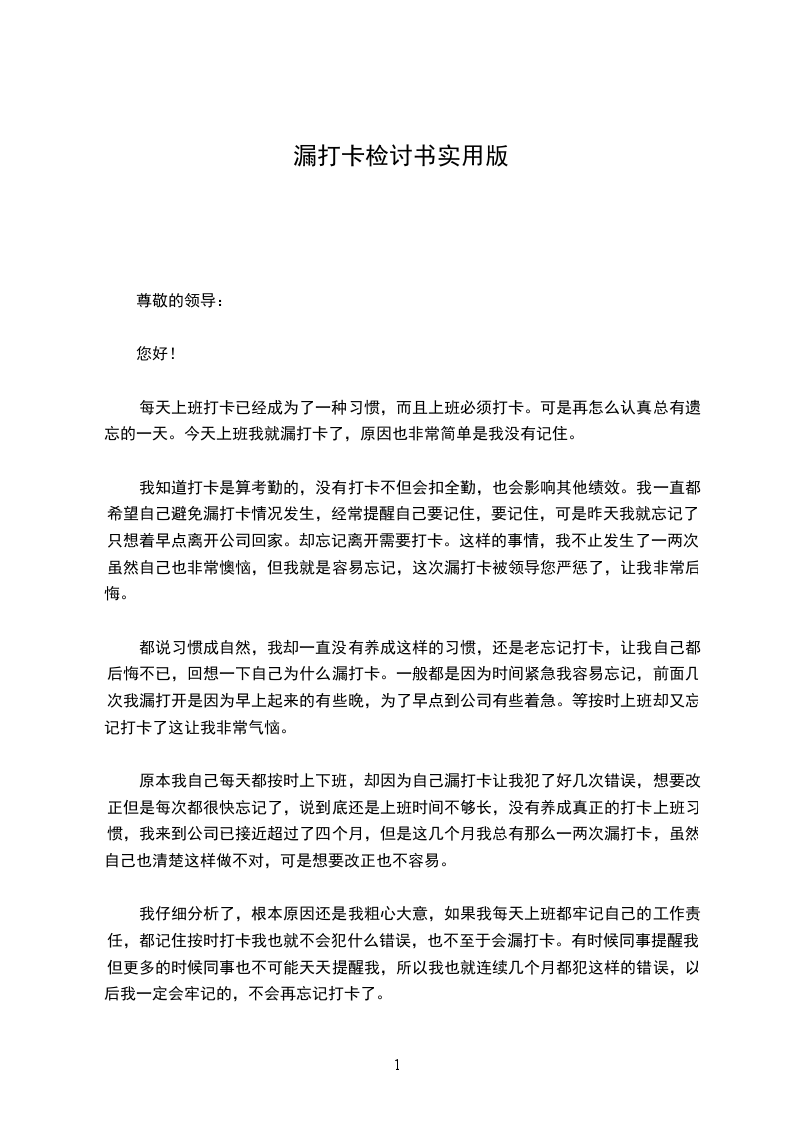 我知道打卡是算考勤的,没有打卡不但会扣全勤,也会影响其他绩效。我一直都希望自己避免漏打卡情况发生,经常提醒自己要记住,要记住,可是昨天我就忘记了,只想着早点离开公司回家。却忘记离开需要打卡。这样的事情,我不止发生了一两次。虽然自己也非常懊恼,但我就是容易忘记,这次漏打卡被领导您严惩了,让我非常后悔。