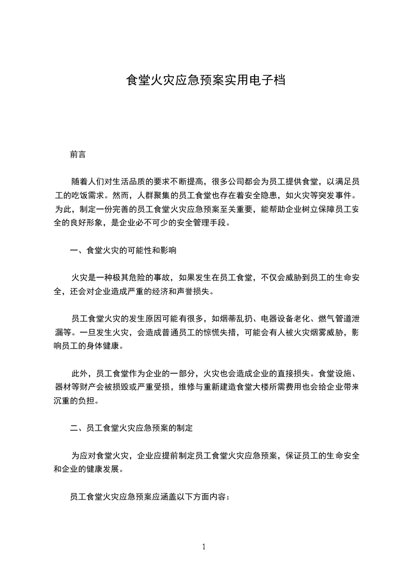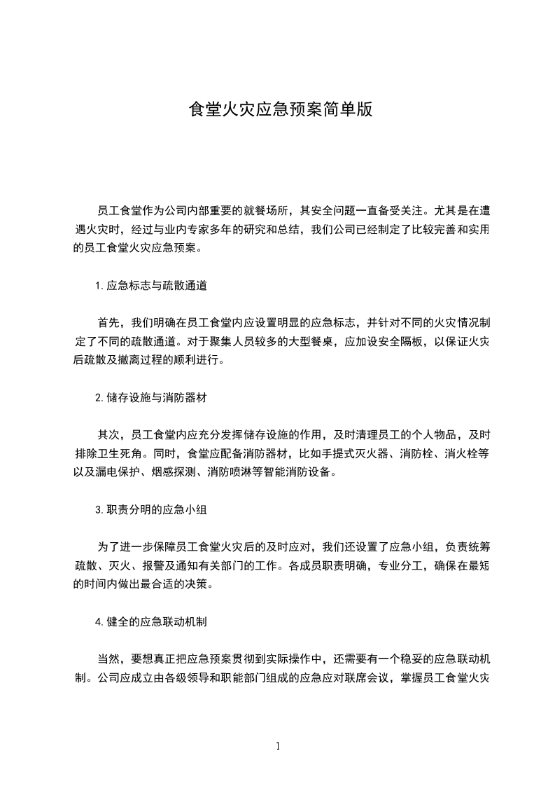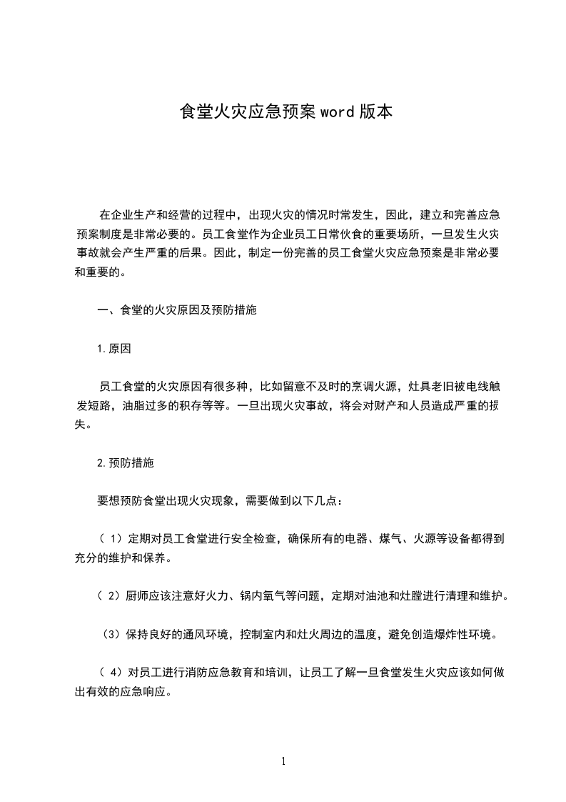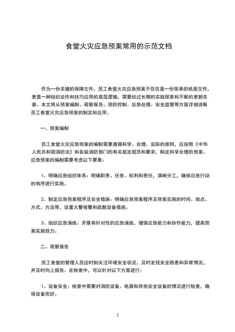 以上就是员工食堂火灾应急预案的相关要点,通过对预案的制定、观察报告、预防控制、应急处理和安全监管等环节进行详细的探讨,可以保证员工食堂安全生产的正常进行,有效保护员工的身体健康和生命安全。