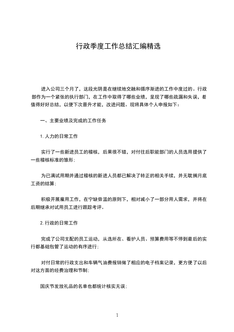 _月份的工作除了日常所作的事情之外,作为行政文员,我还协助人事的同事做了招聘的工作,协助领导举行了年中的总结会议,现我就_月份的工作总结一下。