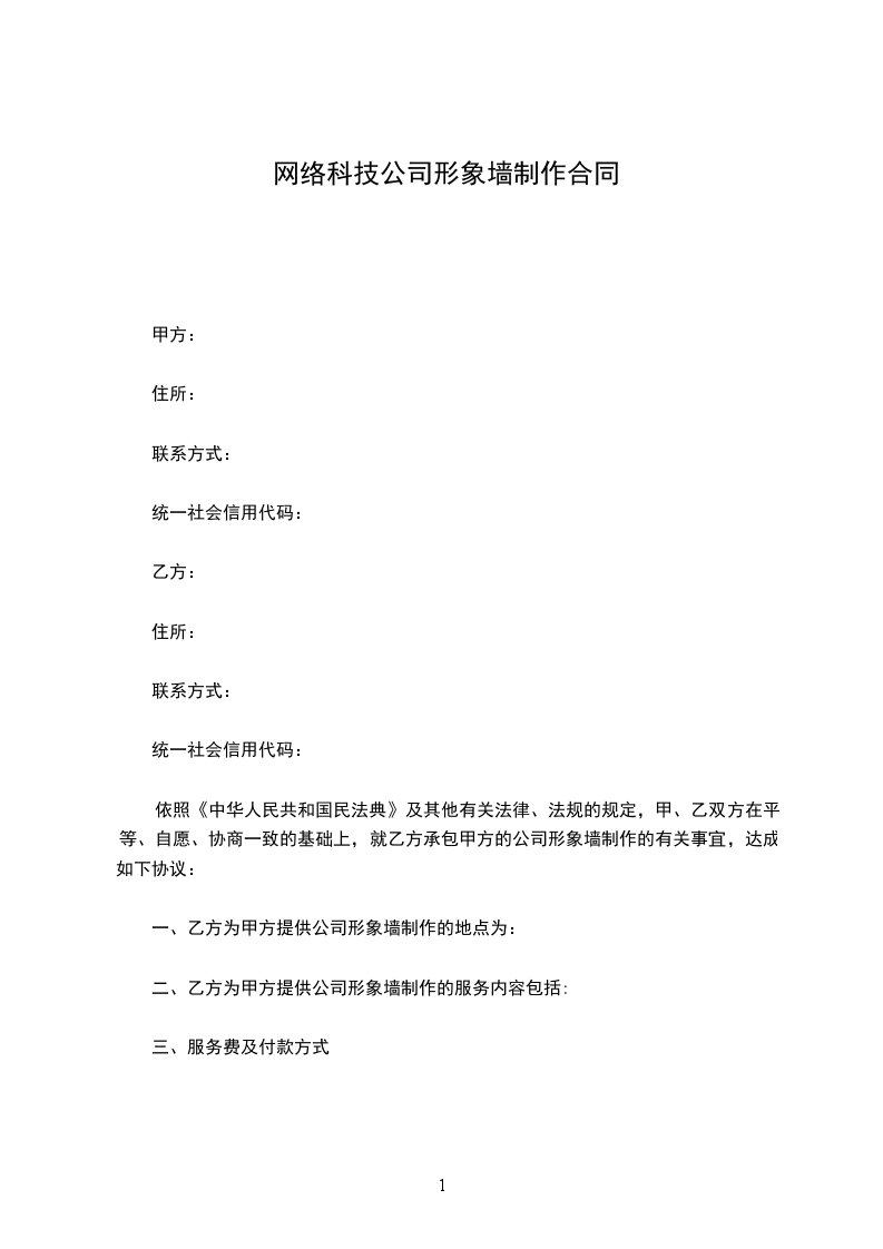 依照《中华人民共和国民法典》及其他有关法律、法规的规定,甲、乙双方在平等、自愿、协商一致的基础上,就乙方承包甲方的公司形象墙制作的有关事宜,达成如下协议:
