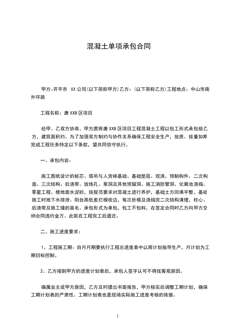 经公司研究指派______项目经理为本单位工程负责人(以下简称甲方),混凝土分项工程交由______小组(以下简称乙方)承包,经协商制定本条款,双方务必遵照执行。