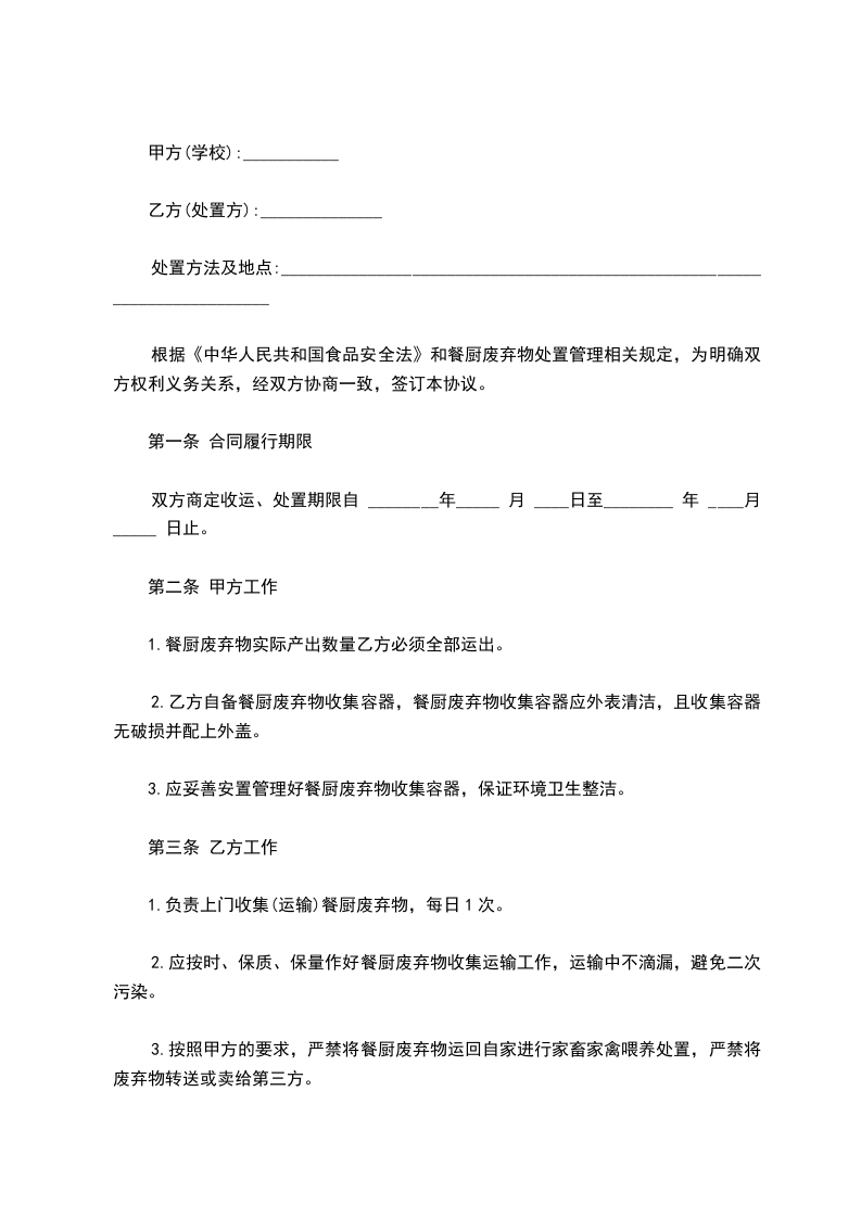 负责按国家、地方政府及甲方的有关环境管理规定对甲方的废弃物进行运输处理。在运输处理过程中,乙方要做到: