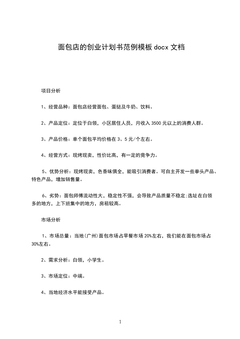 1、市场总量:当地(广州)面包市场占早餐市场20%左右,我们能在面包市场占30%左右。